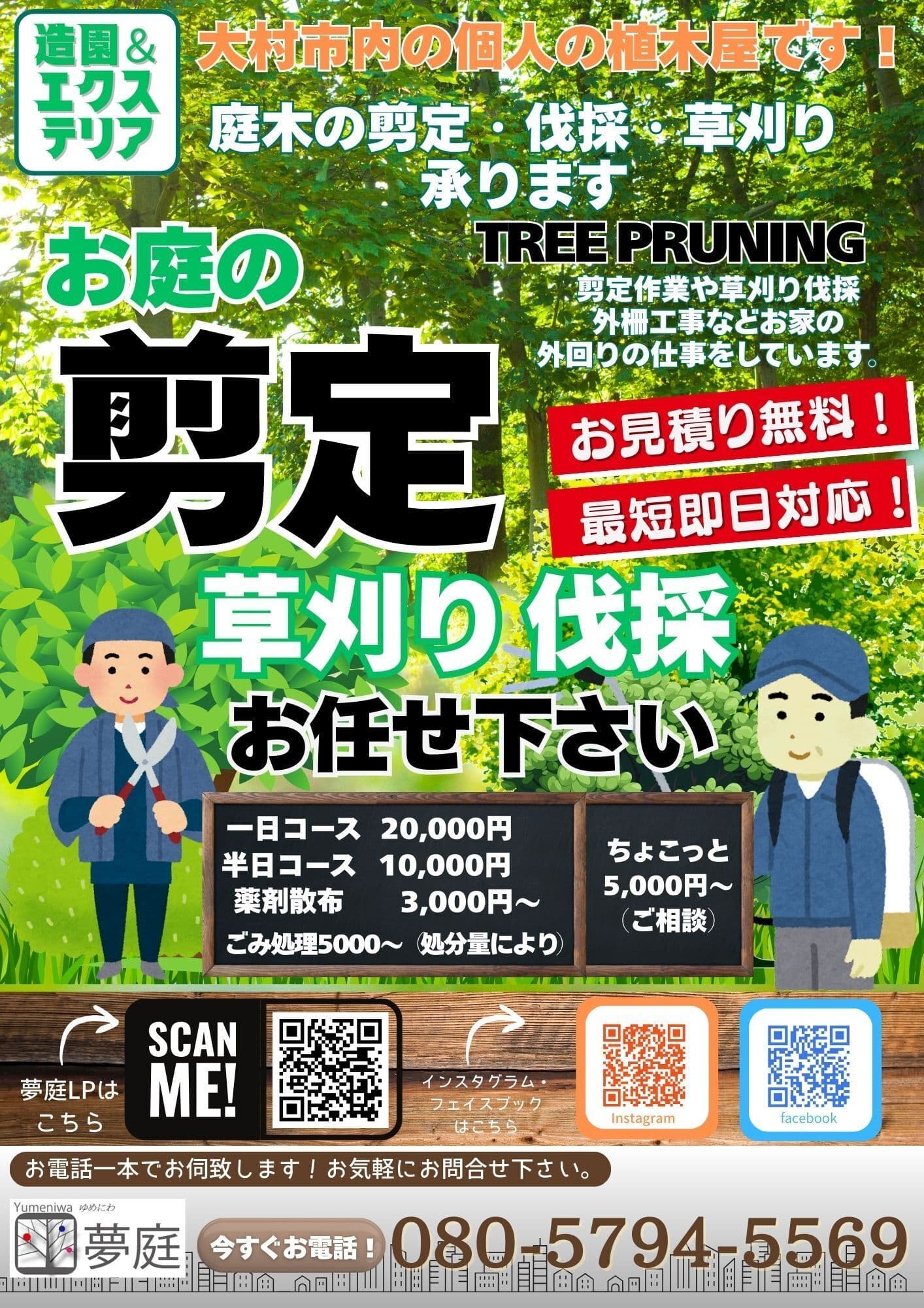 シンボルツリーのみ、薬剤散布のみ、除草のみ、